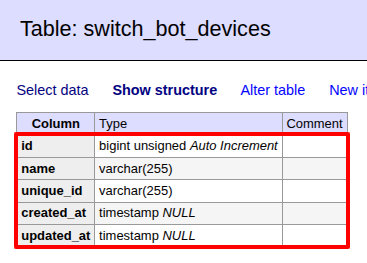 php artisan make:model SwitchBotDevice -ms