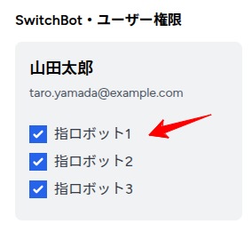 <h1 class="mb-3 font-bold">SwitchBot・ユーザー権限</h1>
