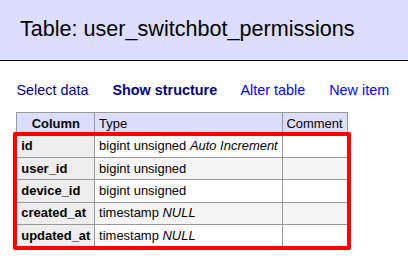 - user_switchbot_permissions:ユーザーのアクセス権限を管理