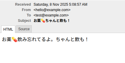 htmlString: '<p>お薬💊飲み忘れてるよ。ちゃんと飲も!</p>',