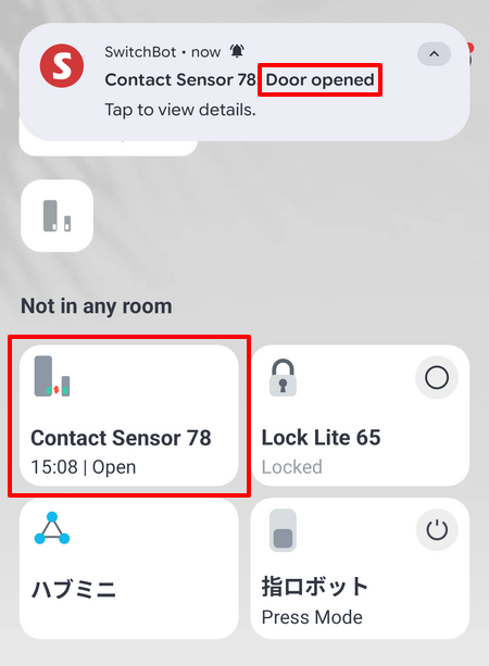 スマホアプリが開閉センサーを認識したら、手で動かしてみましょう。