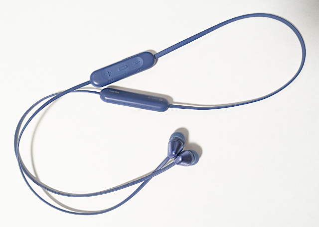 Bluetoothで接続できる以下のような無線イヤホン(Sony WI-C310)を使います。