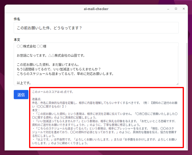 ということで、今回はメール文面をローカルLLMで自動チェックするシステムをつくってみました!