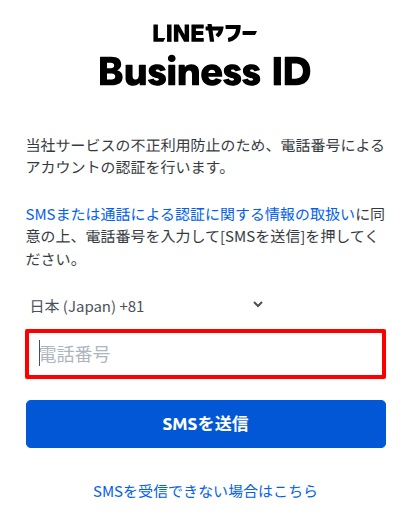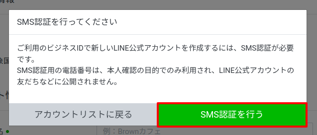 ショートメッセージ認証を求められるので「SMS認証を行う」ボタンをクリック。